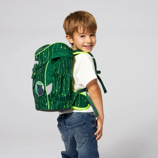 The mini is our ergonomic kindergarten backpack The small waist & chest strap has two advantages: this helps practice how to wear school backpacks later in a comfortable way. Furthermore, it sits close to the back without sliding around – even when jumping & playing around.