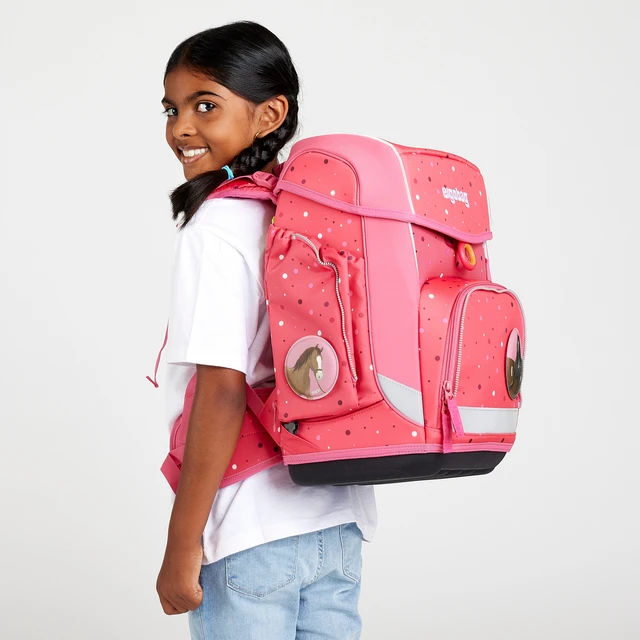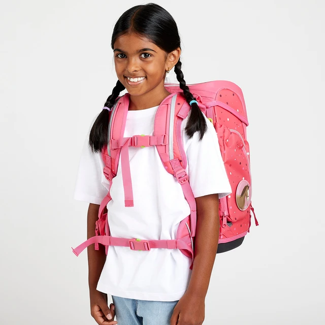 The clear school backpack has a solid shape and can be opened with a simple one-finger grab. The inside is organized and even messy little ones will have a clear view. The ergonomic >>Your-Size-System<< can be adjusted in its height and adjusts to fit the child’s back.
