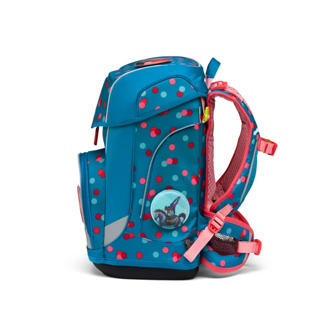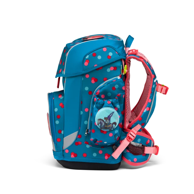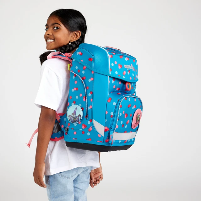 Thanks to the >>Hugging Back System<<, the super-light school bag only weighs 780 g and is therefore perfect for somewhat smaller kids. It has a solid shape and is opened with a simple one-finger grab. The inside is organized and even messy little ones will have a clear view.