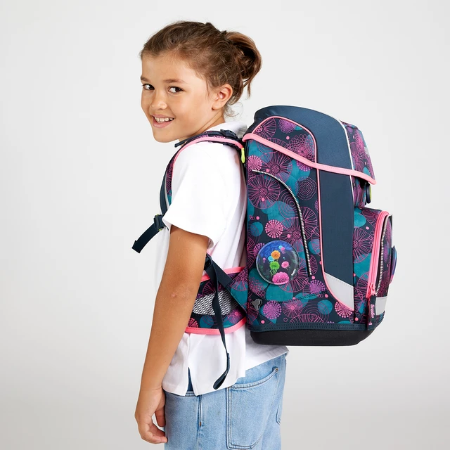 Thanks to the >>Hugging Back System<<, the super-light school bag only weighs 780 g and is therefore perfect for somewhat smaller kids. It has a solid shape and is opened with a simple one-finger grab. The inside is organized and even messy little ones will have a clear view.
