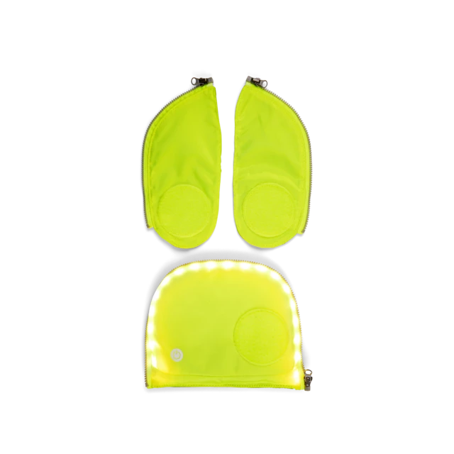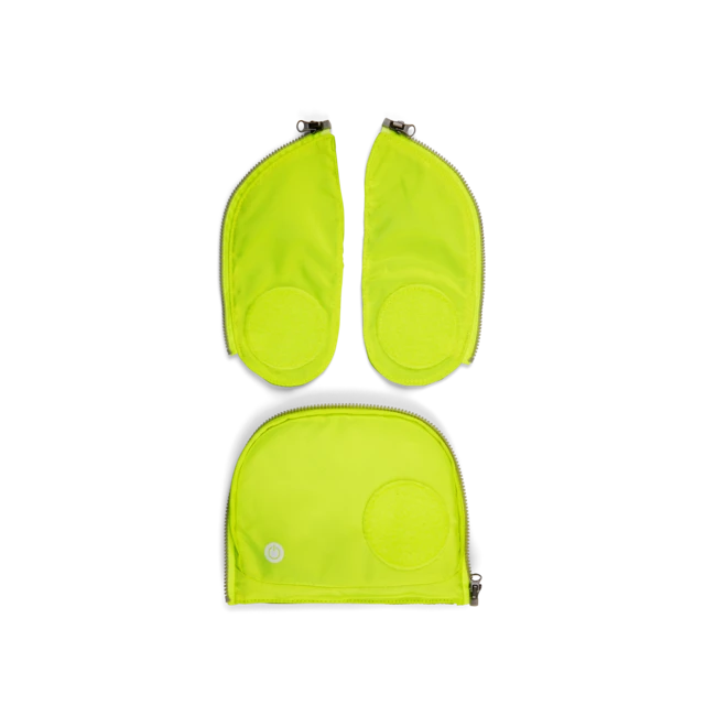 Zip on visibility! The three-part color panels in neon colors can be attached to the ergobag by a zipper. The fluorescent fabric simply glows and provides improved visibility at dusk and during the day. Available in bright neon colors, with reflective stripes or fully reflective.