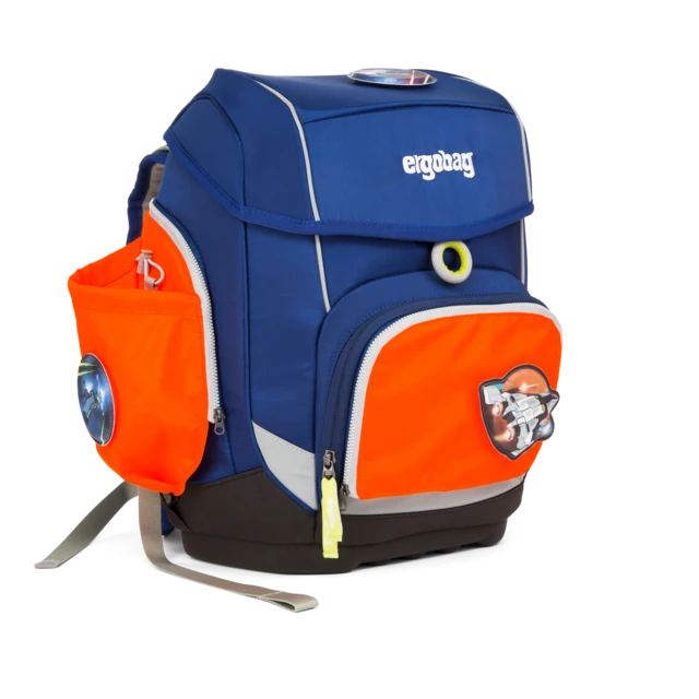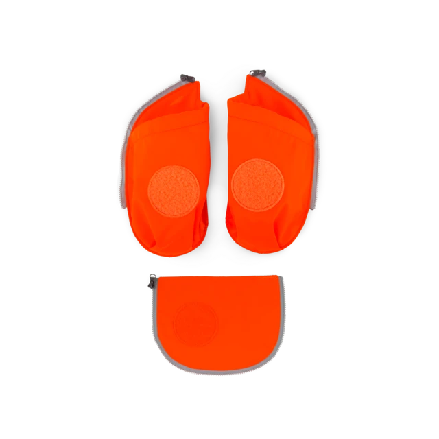The side pockets combine visibility & additional storage space on the ergobag. The three-part sets, consisting of the front and two side pockets, can be easily attached to the school bag with a zipper. They are particularly suitable for storing small items such as umbrellas or gloves.