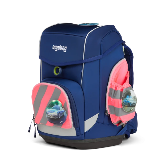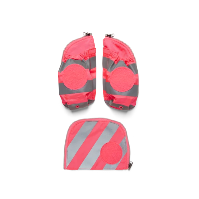 The side pockets combine visibility & additional storage space on the ergobag. The three-part sets, consisting of the front and two side pockets, can be easily attached to the school bag with a zipper. They are particularly suitable for storing small items such as umbrellas or gloves. Available in bright neon colors, with reflective stripes or fully reflective.