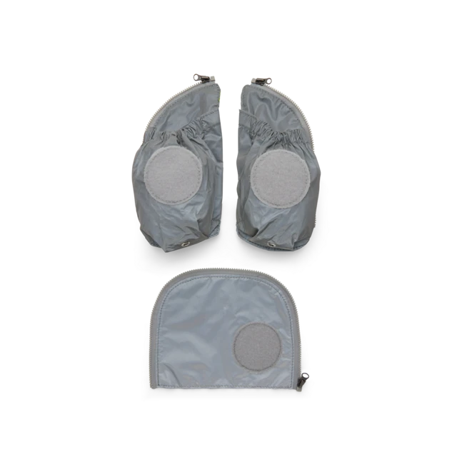 The side pockets combine visibility & additional storage space on the ergobag. The three-part sets, consisting of the front and two side pockets, can be easily attached to the school bag with a zipper. They are particularly suitable for storing small items such as umbrellas or gloves. Available in bright neon colors, with reflective stripes or fully reflective.