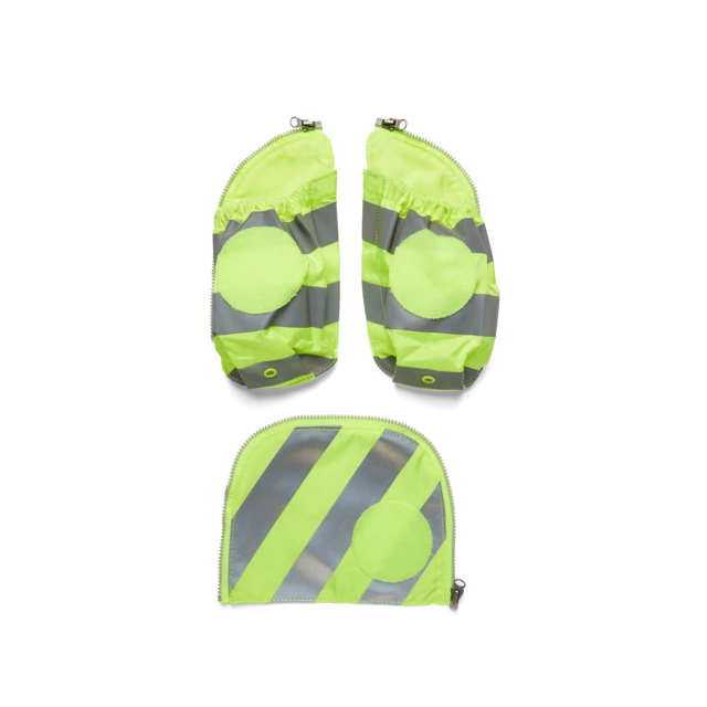 The side pockets combine visibility & additional storage space on the ergobag. The three-part sets, consisting of the front and two side pockets, can be easily attached to the school bag with a zipper. They are particularly suitable for storing small items such as umbrellas or gloves. Available in bright neon colors, with reflective stripes or fully reflective.