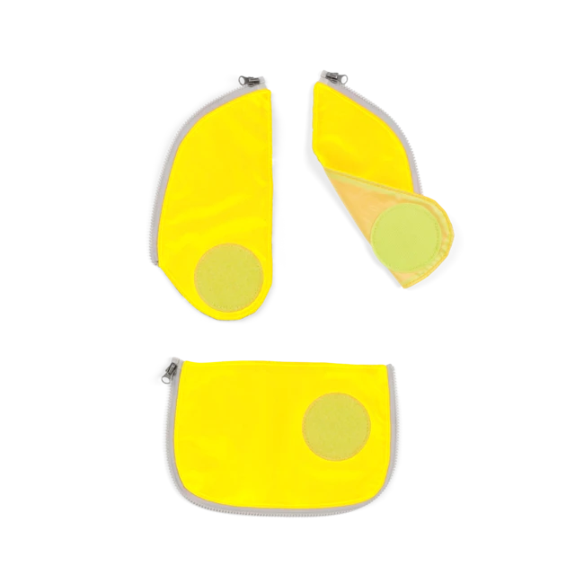 Zip on visibility! The three-part color panels in neon colors can be attached to the ergobag by a zipper. The fluorescent fabric simply glows and provides improved visibility at dusk and during the day. Available in bright neon colors, with reflective stripes or fully reflective.