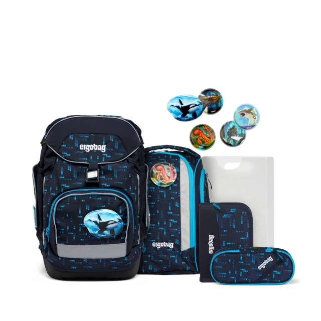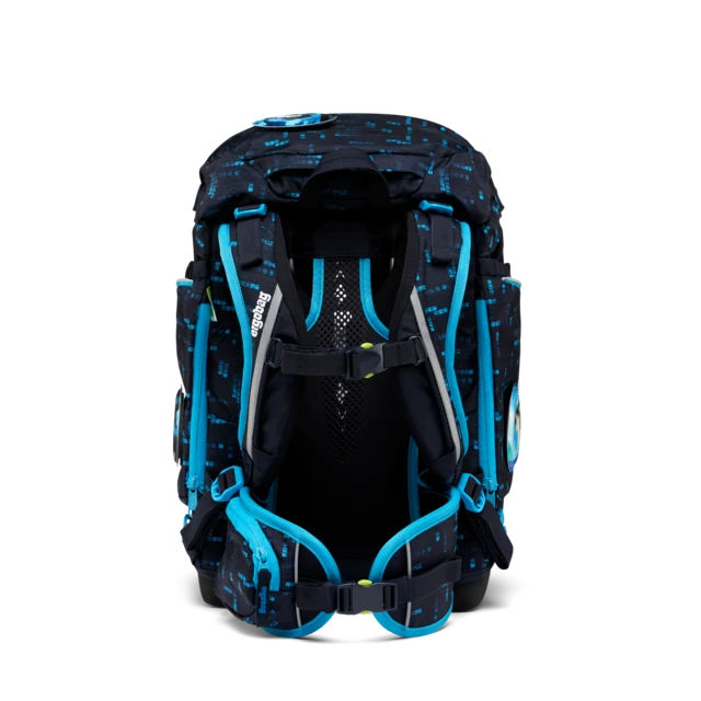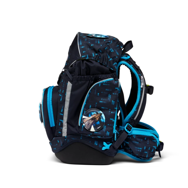The school backpack with the ergonomic >>Your-Size-System<< has a modern, flexible shape. The entire content can be compressed with the drawstring. A notebook box is included in the set to protect against dog-ears. The buckle can be opened by sliding it to the side.