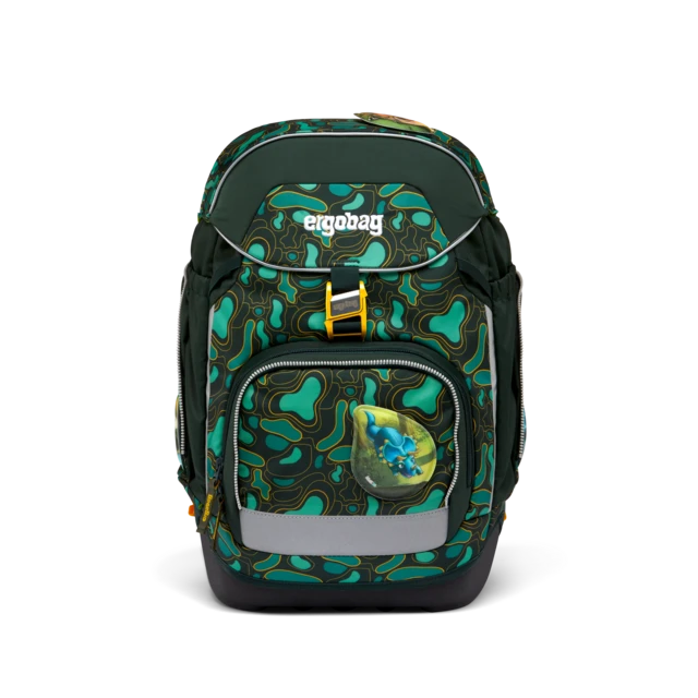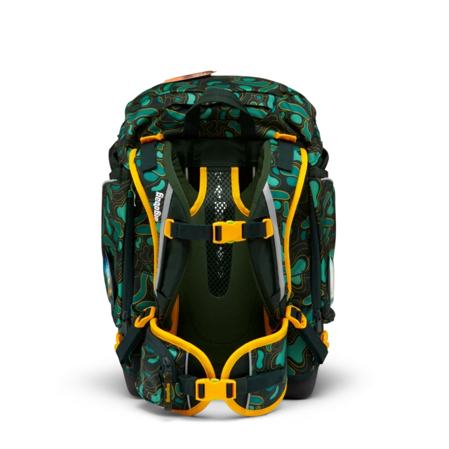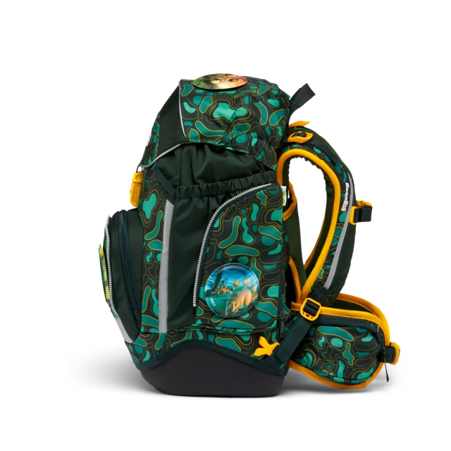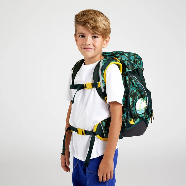 The school backpack with the ergonomic >>Your-Size-System<< has a modern, flexible shape. The entire content can be compressed with the drawstring. A notebook box is included in the set to protect against dog-ears. The buckle can be opened by sliding it to the side.