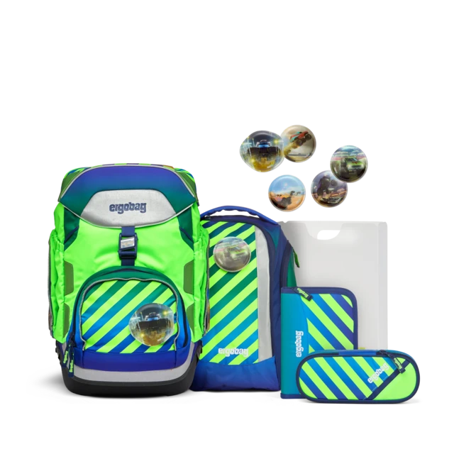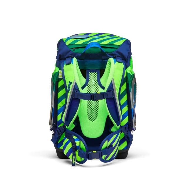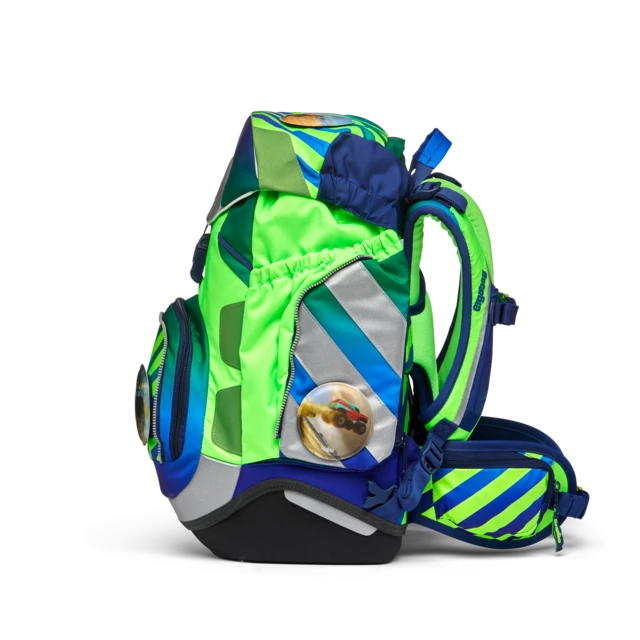 The school backpack with the ergonomic >>Your-Size-System<< has a modern, flexible shape. The entire content can be compressed with the drawstring. A notebook box is included in the set to protect against dog-ears. The buckle can be opened by sliding it to the side.