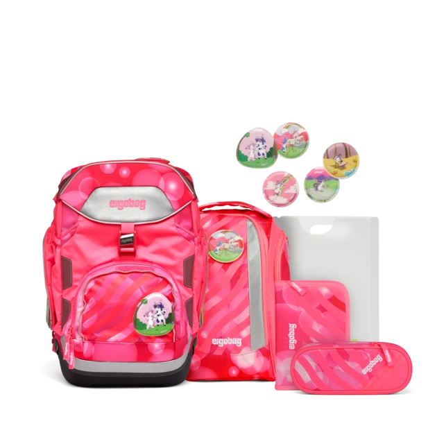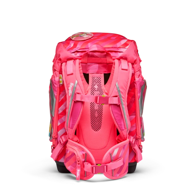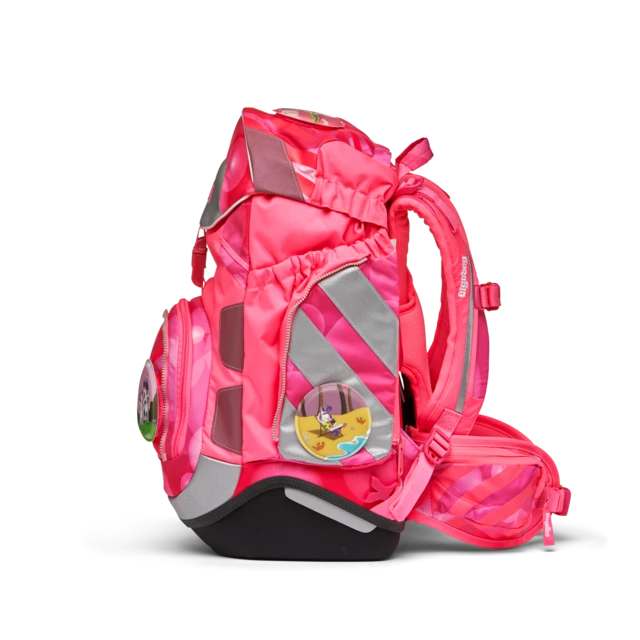 The school backpack with the ergonomic >>Your-Size-System<< has a modern, flexible shape. The entire content can be compressed with the drawstring. A notebook box is included in the set to protect against dog-ears. The buckle can be opened by sliding it to the side.