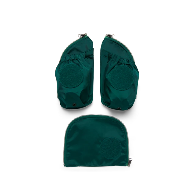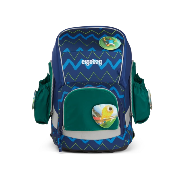The side pockets combine visibility & additional storage space on the ergobag. The three-part sets, consisting of the front and two side pockets, can be easily attached to the school bag with a zipper. They are particularly suitable for storing small items such as umbrellas or gloves.